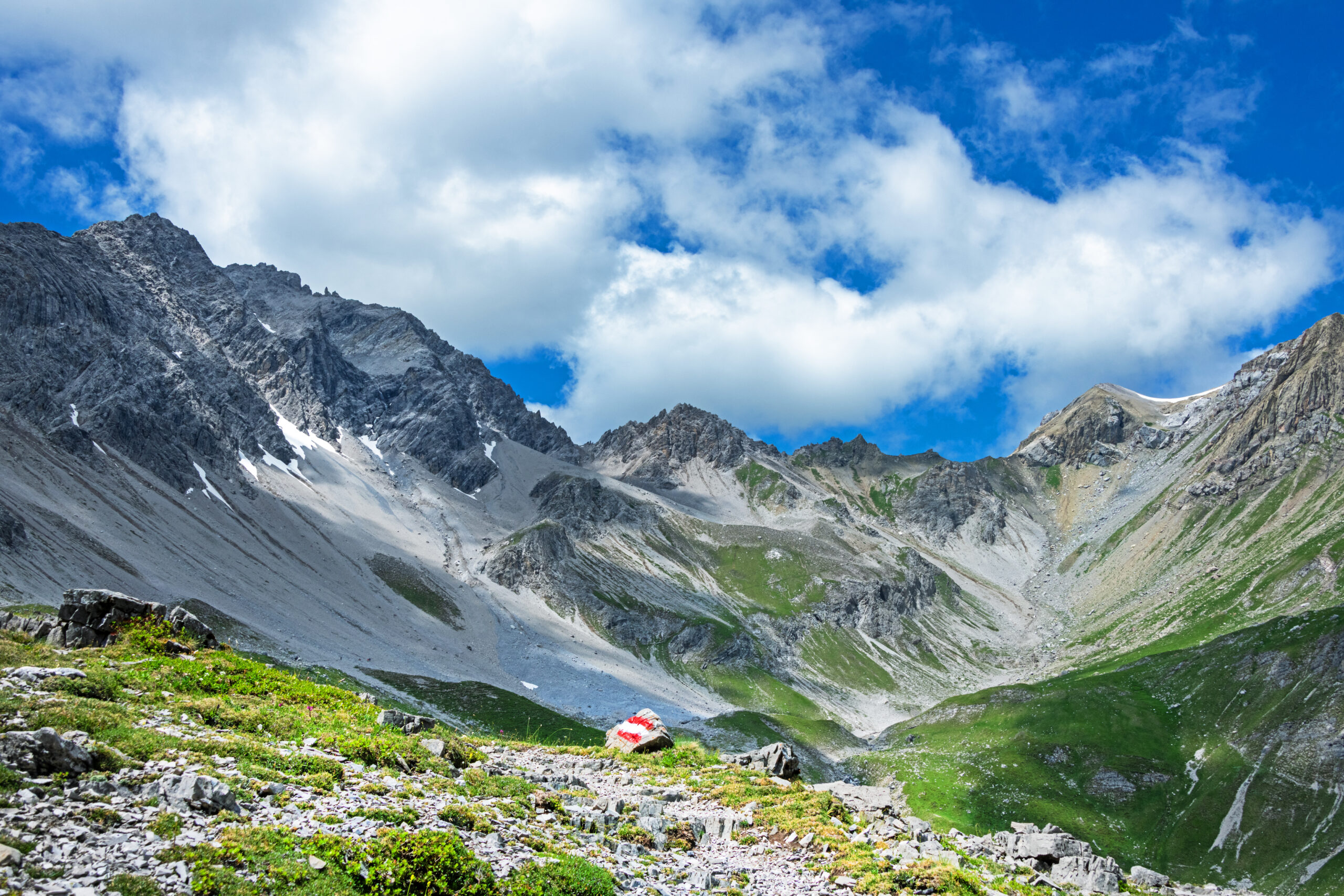 Zwischen der Memminger Hütte und Zams wartet auf dem Weitwanderweg E5 ein echtes Highlight auf die Wanderer: Von der Memminger Hütte aus geht es zuerst auf die Seescharte (2.599 m). Von dort führt dann ein anspruchsvoller Steig hinunter durch das wilde Zammer Loch bis ins Tal – eine Etappe für trittsichere Wanderer mit Sinn für Abenteuer.