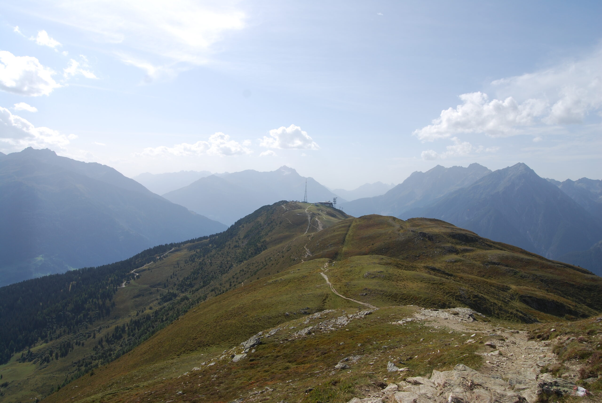 Wer vom Krahberg aus eine sanftere Wegführung bevorzugt, kann auf die südseitige Alternativroute des E5 ausweichen. Diese Variante startet ebenfalls an der Bergstation der Venetbahn und führt über die Gogles Alm zur Larcher Alm (1.814m) und weiter hinunter ins Pitztal nach Wenns.
